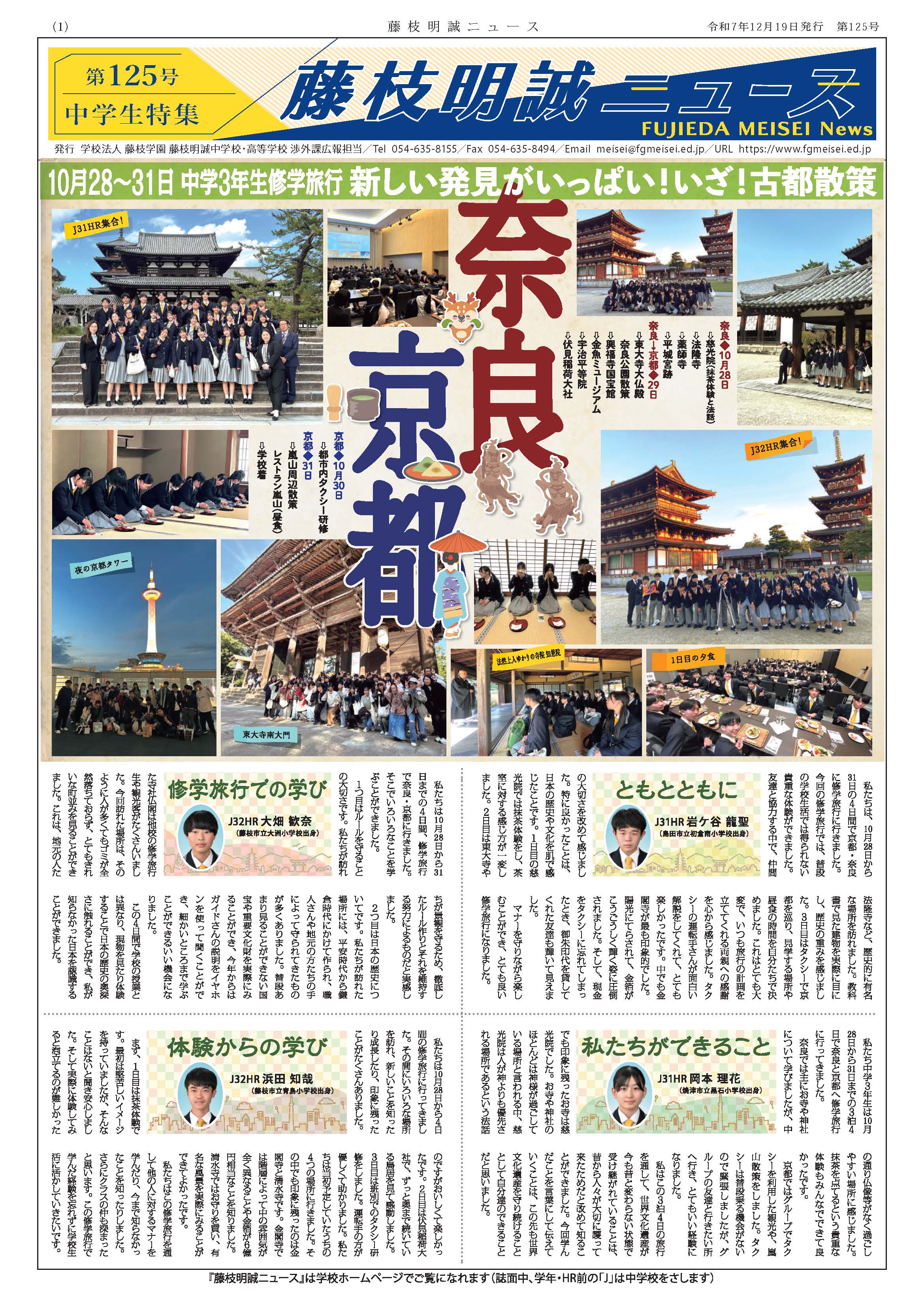 明誠ニュース 第125号(令和7年12月19日発行)