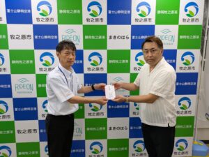 10月6日(月)、先月発生した台風15号による被害からの復興を願い、本校保護者会から牧之原市へ義援金を寄付いたしました。
