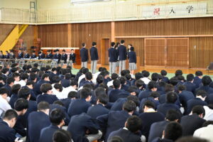 10月25日(土)3限目に生徒総会を実施しました。生徒会長、副会長以下生徒会役員の認証式ののち、後期委員会の活動内容と目標の発表を行いました。